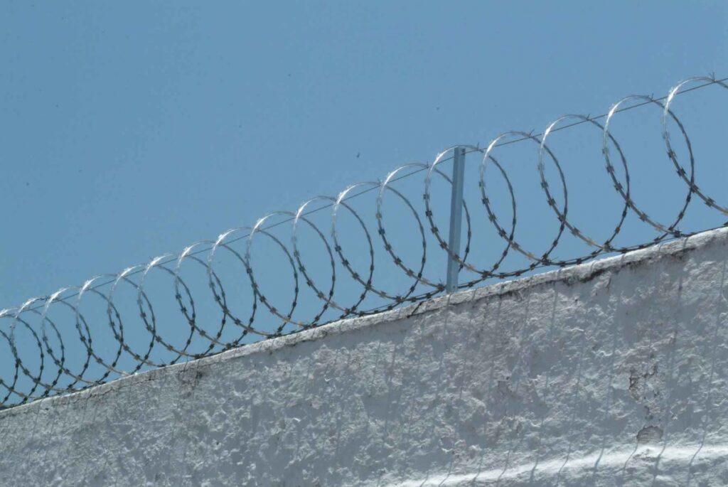A concertina, também conhecida como arame farpado em espiral ou Razor Wire, é uma barreira física feita de aço galvanizado com lâminas cortantes e pontiagudas. Sua função é puramente dissuasiva e passiva, pois torna a transposição do muro extremamente difícil e perigosa.